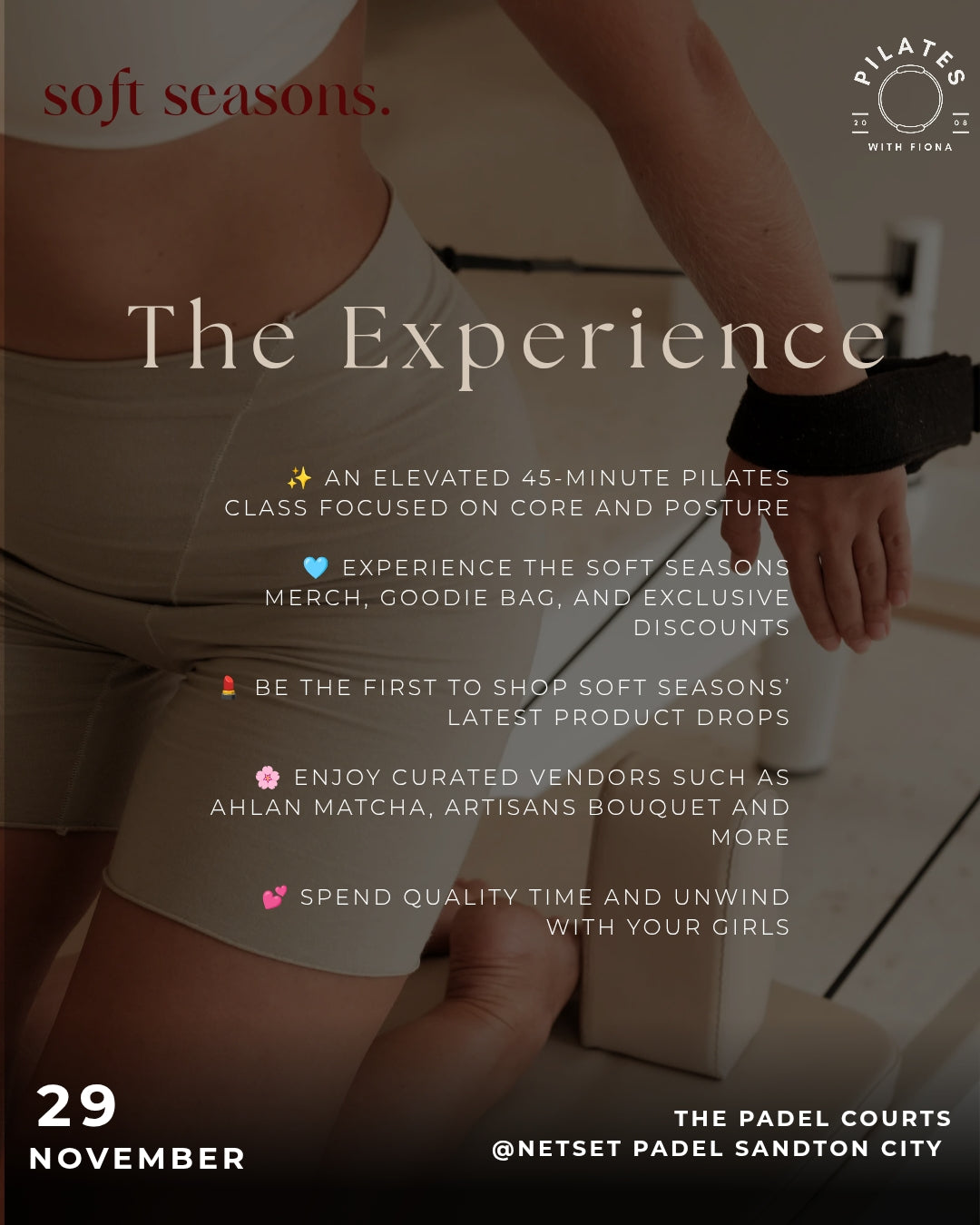 Soft girl Pilates 9.30am for 9.45am, 29 Nov 2025, hosted at netset sandton padel courts (Females only)